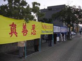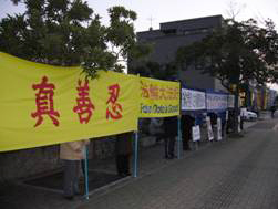 活动的前一天,当地学员接到警察打来的电话说:领馆的工作人员说当天有三百多中国人要来,不要让法轮功到领馆来抗议。法轮功学员指出,这表明领馆的人员也明白中共迫害法轮功是非法的、和不得人心的,而且非常害怕前来的中国人看到真相,所以才这么做。但是,法轮功在日本是合法的团体,有权利举行集会和游行等活动。而警察也表示,一定要保证法轮功学员们的人身安全。