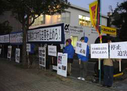 【明慧网二零零九年二月十二日】二零零九年二月十日晚(前一天是元宵节),驻福冈中共领事馆請日本九州地区的部份华人和留学生到领馆内吃喝,当地学员觉得这是一次向中国人讲清真相的好机会,于是在当晚五时半来到领馆前,并打出“真、善、忍”, “法轮大法好”,“停止迫害法轮功”,“声援四千九百六十万人退党”等的中日文横幅。
