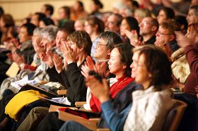 【明慧网二零零九年二月十三日】(明慧记者苏青麦迪逊综合报道)二零零九年二月十二日晚,享誉全球的神韵巡回艺术团演出在美国威斯康星州首府麦迪逊市(Madison)著名的欧富桥艺术中心(Overture Center for the Arts)圆满落下帷幕。丰富多彩的节目时而激昂振奋,鼓声隆隆;时而轻歌曼舞,扇袖广舒,纯善纯美的表演带给观众心灵的感动,掌声、喝彩声、欢笑声时时回荡在剧场中。晚会结束时,演员在观众的热情掌声中两次谢幕,为神韵在麦迪逊市的首度演出划下完美句号。