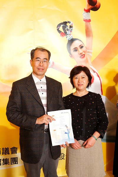 ![]() 中华医事科技大学校长林金鹏和儿子一起观赏神韵的演出 |