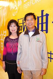 经营布料企业二十年,产品外销到全世界各地的铭风布业有限公司董事长蔡昭文,从事布料设计四十余年。此次,他偕其夫人一同前来观赏神韵的表演,对于神韵服装的色彩赞赏不已。他的夫人陈金英的专业是服装设计,也很震撼于神韵的服装。