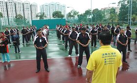 二零零九年二月二十五日,马来西亚法轮大法学会受吉隆坡一家大公司的邀请到该公司总部教公司职员炼法轮功,上百名公司员工踊跃参与活动。
