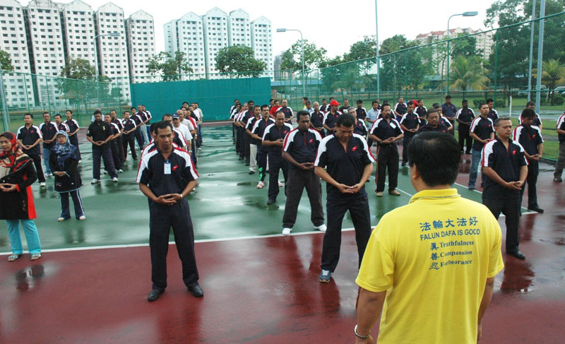 学炼法轮功活动从早上八时三十分开始至九时三十分。法轮功辅导员陈女士在教功时向职员们解释了法轮功除了炼动作之外,也要按照“真、善、忍”做好人,提高道德修为。