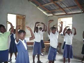 在去Artibonite à Deslande市郊我的一个朋友家旅游,来到小村里,所有的孩子都想看一眼这位“白皮肤的女人”,第二天早上,在一位居民(83岁的老爷爷)家讲真相和炼功,还去了村里的小学校,和孩子们的见面是很感人的,所有的孩子(四年级)正在练习一首用法语唱的“欢迎您”的歌,(学校教授法语)。高年级的学生、老师和校长也都学习了前三套功法,老师还在黑板上写下了:法轮大法,真、善、忍。