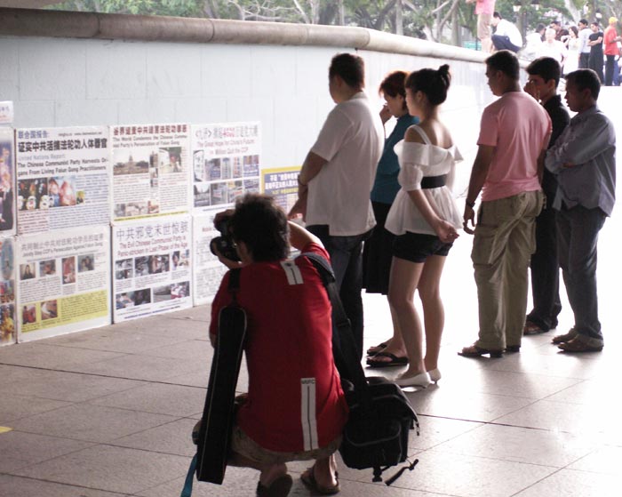 一九九九年七月,中共大规模迫害、诽谤抹黑法轮功后,和全世界法轮功学员一样,新加坡法轮功学员辛苦地奔忙于工作和家庭之间,省吃俭用,自费复印资料,克服困难,利用休息时间来到这里讲真相。