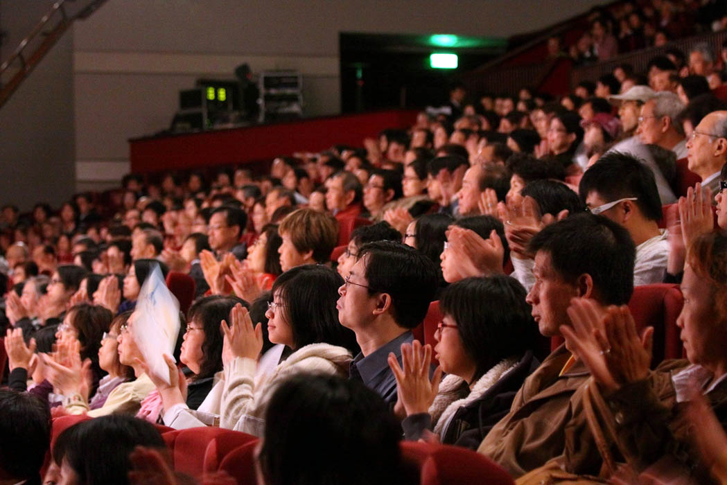 ![]() 观众专注的观赏神韵晚会二月廿八日在台北第五场演出 |