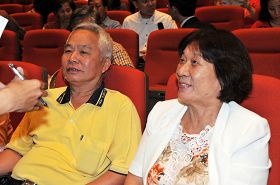 ![]() 世界客属总会高雄市会、高雄市客家文化事务基金会董事长钟新富和夫人观赏神韵高雄首场演出 |