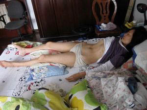 陆雪琴在市北分局辽源路派出所遭到恶警闵行、市北刑警三队一个黑脸长发大眼的大个子(很可能叫潘军)等恶警殴打,并九天九夜不让睡觉,多次昏死。迫害导致腰、腿、脚组织挫伤、骨骼变形、受伤残废,腰、背内伤剧痛、全身肿胀、尿不出,必须插导尿管,大小便不能自理。形成大面积淤血与血栓,血栓从腿部发展到腰部与胸腹部,被延误治疗而导致瘫痪。又因被恶警闵行用皮鞋猛踢腹部,下身流血不止,子宫内形成严重肌腺瘤与血栓,似怀孕3、4个月大小,已无法进行治疗。