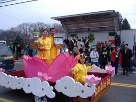 ![]() 法轮功学员的队伍在Miller Place - Rocket Point的圣派翠克节游行中获头奖和最佳彩车奖 |