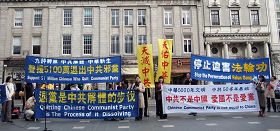 爱尔兰退党服务中心义工叶女士在集会上表示,“我们祝贺已经道德觉醒,声明退出中共的五千万民众,同时我们也继续呼吁尚未三退(退党、退团、退队)的中国人,抛弃对中共的幻想与恐惧,勇敢的摆脱中共的精神控制,选择自由与光明。早日退出中共,不要成为中共恶党邪灵的陪葬品。”