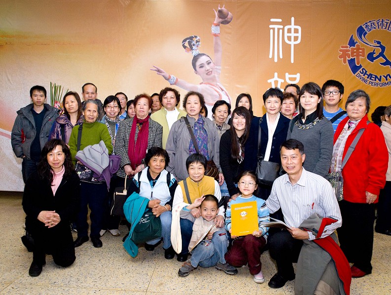 今年台湾许多政界、工商界、艺界的精英,不仅自己慕名而来,还「组团」与亲友一同欣赏神韵。台北县五金界的“新海五金联谊会”与“融融会”,会员人数约六十人,今年将“观赏神韵”列为年度活动,加入亲友人数之后,组成一百七十人声势浩大的团体前来观看。散场之后,还轮流在神韵晚会巨幅海报前合影留念,引起旁人一阵关注。