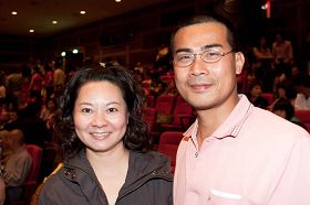沐华国际美容有限公司总裁洪若萍和先生谢丰益,率领五十位经络理疗师团队前来观看神韵演出,洪若平表示,“刚开始听说神韵多好多好那种感觉,我们亲自来看后的感觉更是不一样,真是百闻不如一见。整个节目的安排、配乐、舞蹈,把佛界、天界、人间融入戏中,这样的融入,很震撼。”