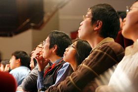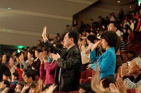 二零零九年三月一日周日中午,各界名流聚集在台北市国际会议中心观赏神韵国际艺术团的演出。