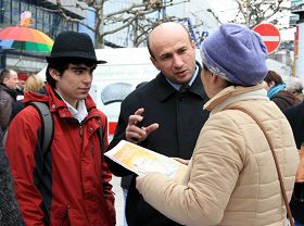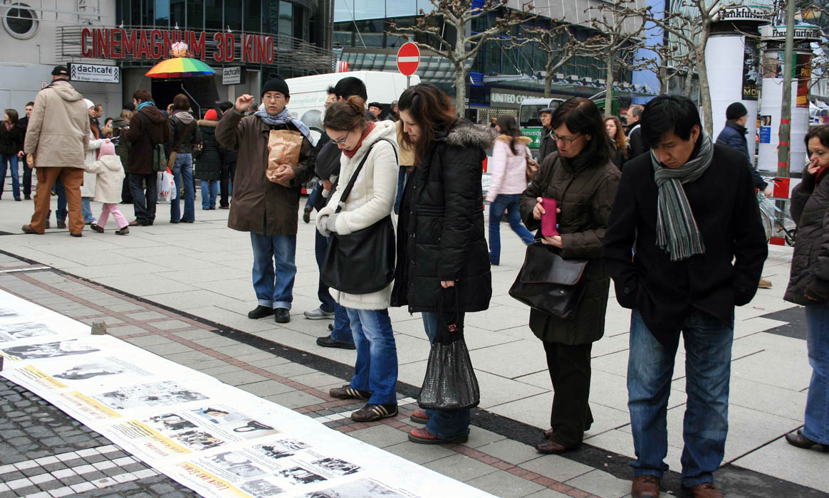 在神韵抵达法兰克福的前一周,法轮功学员们每天到市中心举办介绍神韵、揭露中共干扰神韵演出的信息台,很多德国人得知中共在德国的土地上,妄图限制德国人的文化自由,都感到不可思议。德国由于历史原因,抛弃了共产主义,现在他们也同样无法容忍共产独裁将黑手伸向德国。他们表示很气愤,中共都将它们独裁的东西延伸到德国的文化领域里来了,不光只停留在政治欺骗和施压、经济上诱惑等方面了。他们表示,一定要去看这个演出,表达对神韵的支持,也是对中共独裁的抗议。