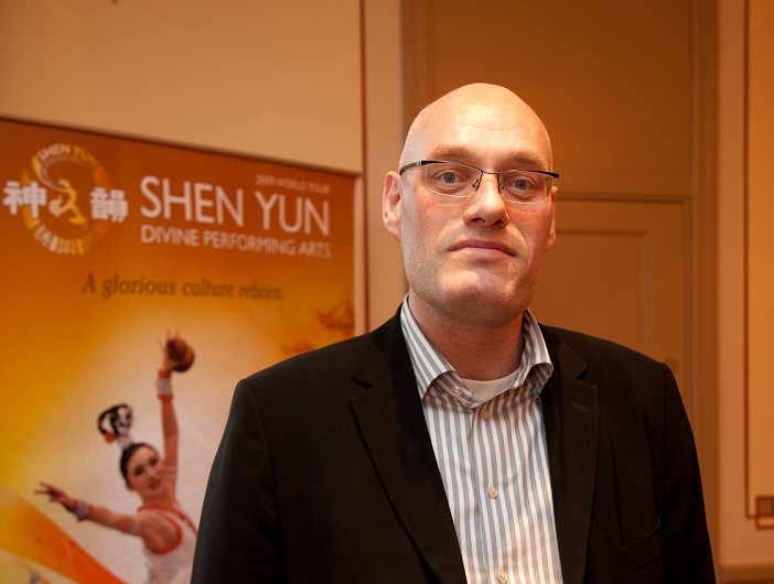 尤塔乃夫先生在瑞典南方是位颇有名气的电视广告专家,他与朋友欣赏神韵后深受震撼。“演出非常非常好,虽然神韵博大精深的内涵我未能全部理解,但我感到收获很大,有种无法确切形容的很美妙的感觉!”