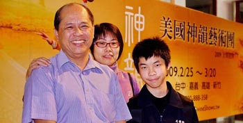 新竹市政府人事处处长丘龙飞一家人前来观赏神韵在新竹第四场演出