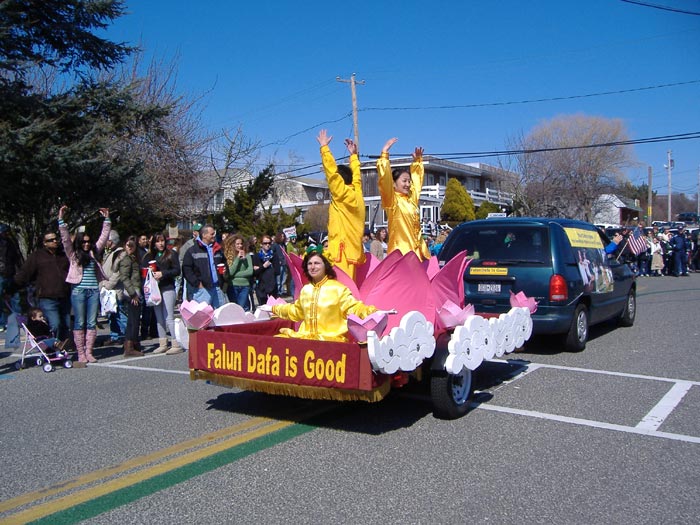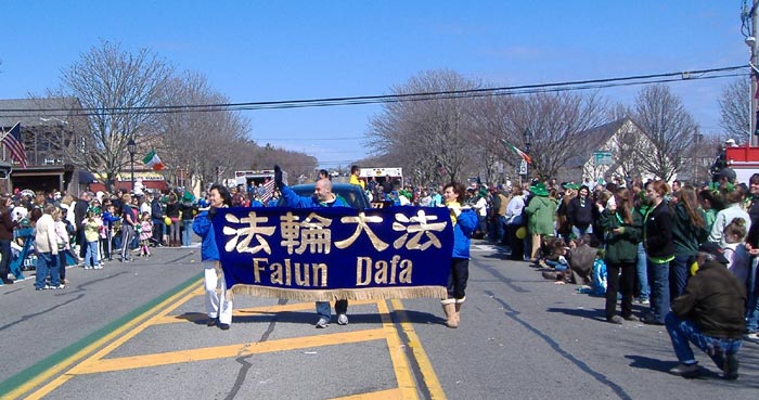 ![]() 长岛最东部莫泰克镇圣派翠克节游行中的法轮功队伍 |