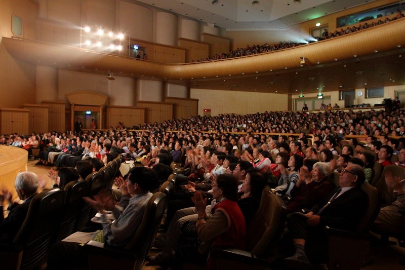 二零零九年三月七日晚,台中第五场神韵国际艺术团的演出在热烈的掌声中落下帷幕。动听的音乐、明亮的色彩、曼妙的舞姿、洞悉善恶的真相,带给满场观众希望与光明。除了台湾中部各阶层的人士涌进了会场,当天还有数十位观众分别从英国、南非、香港、马来西亚远道而来,就为看神韵!