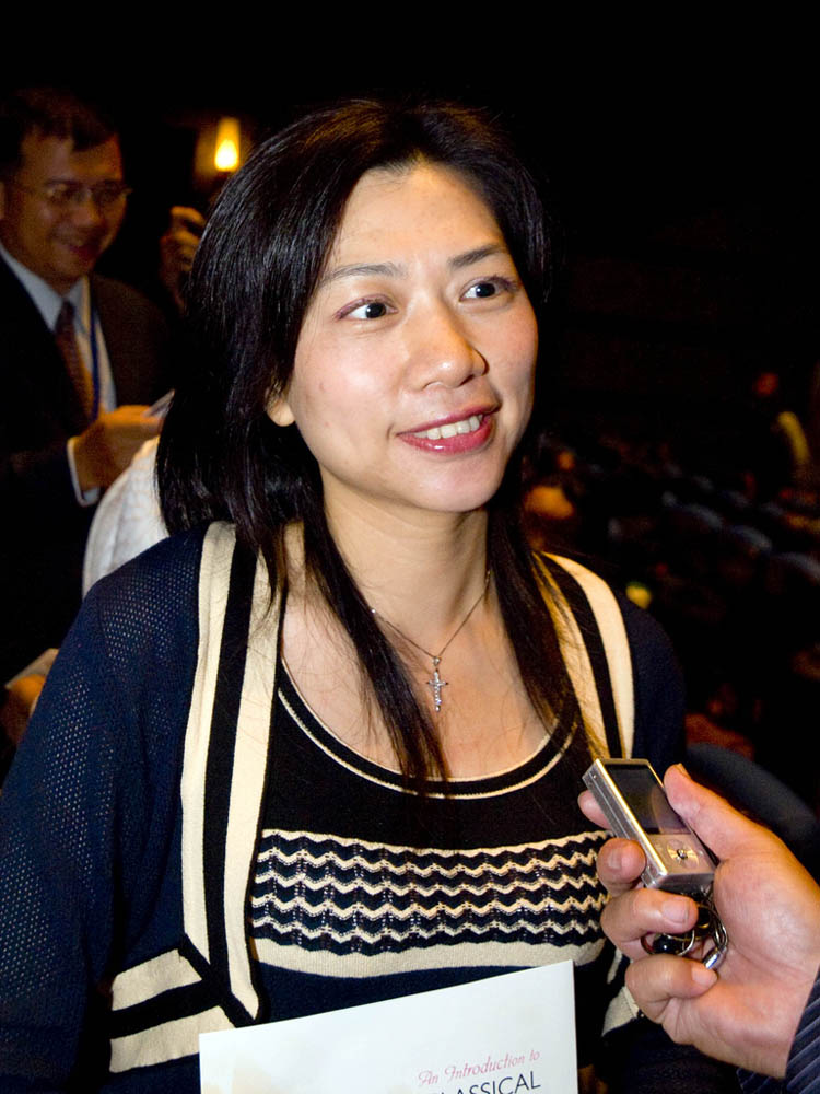 潘俊光是生产合成皮革织布用品的健强高科技股份有限公司董事长,欣赏了上半场的演出后,他愉快的表示,神韵艺术团的演出水准实在很高,他说,“这个太好了!台湾这边能看到这水准,真好!希望演出多一点,给中部的人多多看,多多学习。”回味了一下,他脸上再度露出笑容,说:“希望再多看一点,可以提升台湾的水准。”