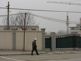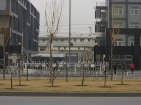 ![]() 北京朝阳区看守所后边的监室围墙、电网、岗楼 | ![]() 北京看守所前边大铁门 |