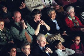 ![]() 观众聚精会神的欣赏神韵纽约艺术团的精彩演出 |