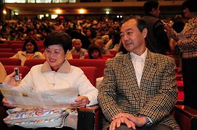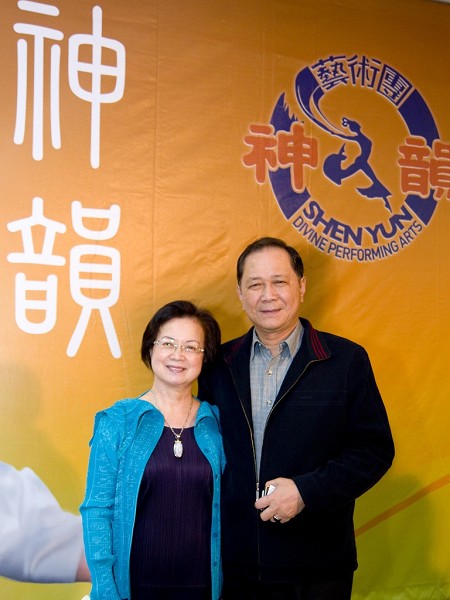 台中市政府地政处处长曾国钧先生,今天也偕夫人一起观赏神韵演出。他表示曾经到过敦煌,而神韵演员的服装有考究敦煌佛的艺术,展现神传给人的正统文化,表现的很不错。