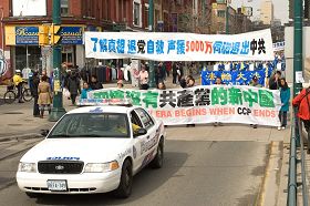 ![]() 三月八日,数百名多伦多市民今天在多伦多市中心的嘉兰中心公园集会,声援五千万同胞退出中共。 |
