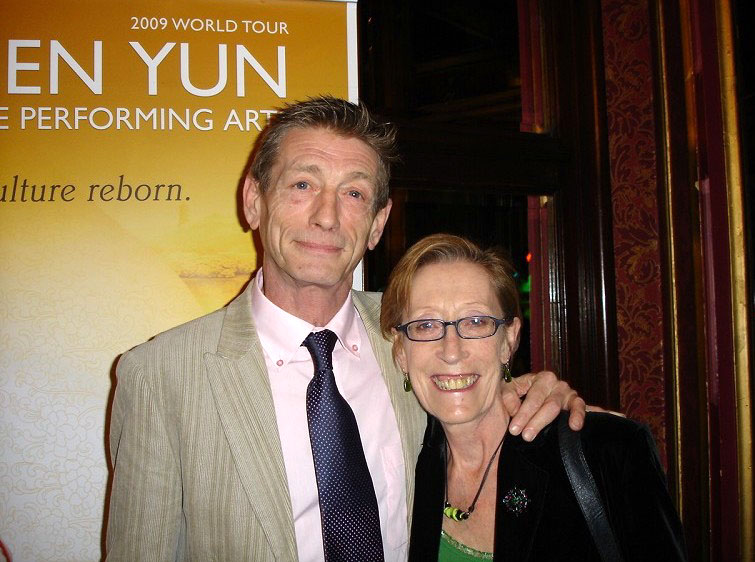 里查德• 麦考尼克先生是位音乐人,妻子珍•威尔曾是一位舞蹈演员,他们一生中游历过很多地方,喜欢去体会不同的文化,也到过中国。当问到他们对演出的感受时,麦考尼克先生首先连说三遍“精彩的演出(Fantastic show)!”然后说:“我真的很喜爱这场演出!(Really love it)”珍还把手放在眼睛下方说:“让我感动得哭了啊(Made me cry)。”