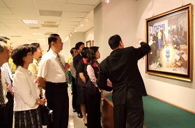 (明慧记者唐恩台湾综合报导)巡回全球五大洲、四十多个国家的“真善忍国际美展”,二零零九年四月三日受邀在台湾高雄市社教馆总馆展览厅展出。四十几幅画展作品透过正统写实的绘画技法,体现艺术应有的光明、纯正与至善。与会来宾出席非常踊跃,并赞美画展可以把人们领向更高的智慧与真理,净化心灵,使精神得以升华。