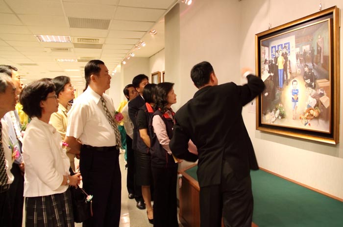 ![]() 二零零八年一月三日,美展在高雄左营的慈恩艺文中心揭幕仪式后,导览人员向出席来宾做重点解说 |