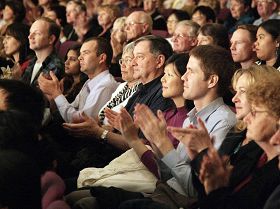 ![]() 图文巴观众对神韵国际艺术团的精彩演出报以掌声 |