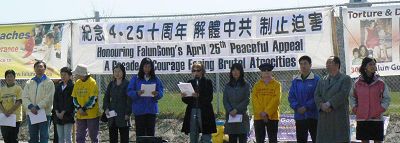 【明慧网二零零九年四月二十五日】(明慧记者英梓渥太华报道)一九九九年四月二十五日,数万名法轮功学员为了争取信仰自由,通过和平理性的方式向中国政府讲清真相。十年后,加拿大首都渥太华的学员聚集在加拿大中使馆前,和平抗议中共迫害,并善劝中使馆的工作人员停止迫害、告别中共。