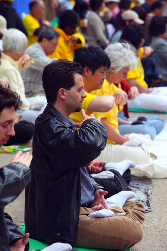 集会结束后,学员们在芝加哥市中心举行游行,告诉更多的人十年前发生在北京的和平上访事件,以及十年来海内外学员们坚持不懈的讲真相,和平理性的抗争。路人纷纷接过学员们手中的传单,有的人不停的对学员们鼓掌以示鼓励,学员们合十微笑回报。