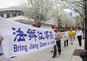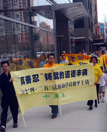 ![]() 法轮功学员在芝加哥市区游行,纪念“四•二五”,揭露中共迫害 |