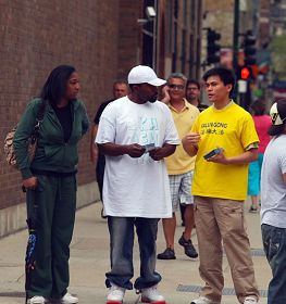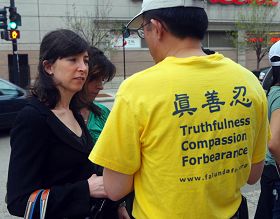 ![]() 法轮功学员向路人详细讲述发生在中国的迫害 |
