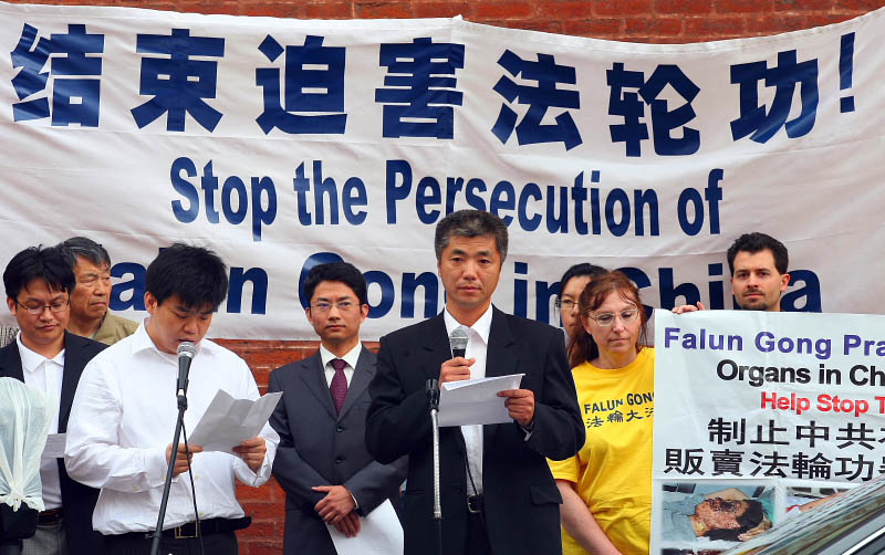 ![]() 法轮功学员在芝加哥中领馆前集体炼功,抗议迫害 |