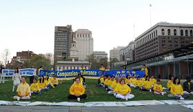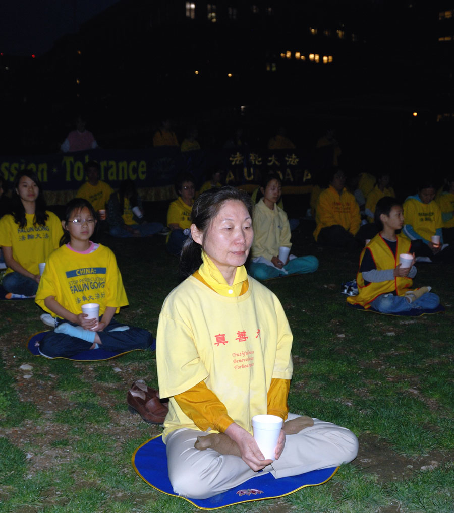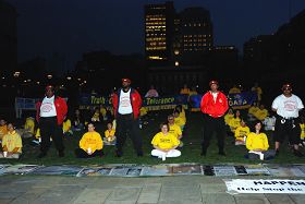 ![]() 法轮功学员纪念“四·二五”十周年,在自由钟前烛光守夜。 |