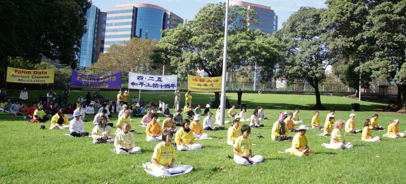 ![]() 纪念“四·二五”,法轮功学员在悉尼市中心集体炼功。 |
