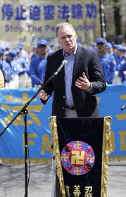 纽约州众议员麦克尔•菲兹派翠克(Michael Fitzpatrick)先生在集会上表示:“我很荣幸能够在这里表示对法轮功的支持。法轮功学员的信仰自由必须得到保障。我将尽力抵制中共对美国的渗透。我希望对法轮功的迫害尽早结束。”