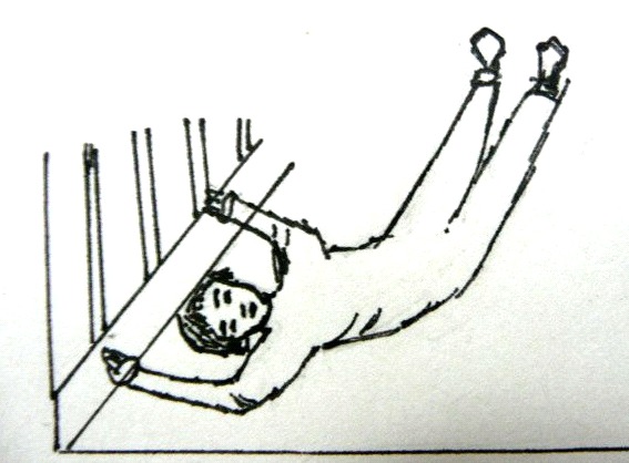 恶警吴荔滨还指使“牢头”带领几个犯人用毛巾紧紧扎住范国平的嘴使劲拉,狠命捏她的嘴巴,几个人又在下面用脚狠狠的踢她。心理极度扭曲变态的吴荔滨看到如此卖力虐待程度后感到满足,终于宣布“可以开大帐了!”吴恶警看着被铐着折磨了一个多月范国平,仍然坚持绝食抵制迫害,又使毒招,将范国平关进禁闭室。