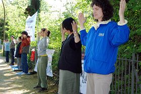 一位妇女听了学员关于迫害和功法的介绍后马上说:“这么大的事情我从来没有听说过。迫害那么严重还有这么多人坚持炼,肯定是有原因的。这个功法好不好,我要亲自体验才知道。”她仔细询问如何找到炼功点,表示下次炼功她就会去。