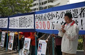 长崎中领馆前,宣读声明和平抗议中共对法轮功的迫害。