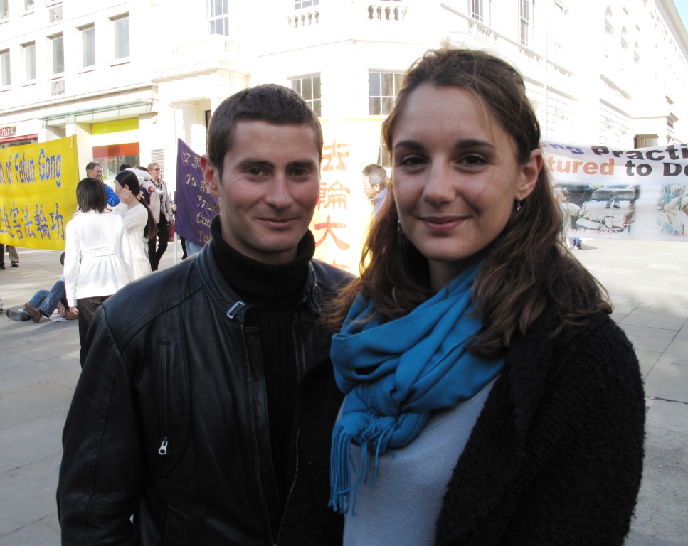 阿利桑德拉和男友是来自法国尼斯的游客,在游览伦敦的短暂时光里,在伦敦市中心圣马丁广场,两人巧遇法轮功学员纪念4.25和平上访10周年的大型活动,这是他们第一次看到法轮功真相。阿利桑德拉对“正在中国发生的暴力迫害”感到很震惊,认为法轮功学员开展这样的活动很有意义:“你们做的很好。”