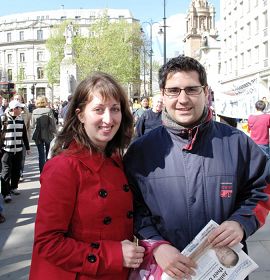 【明慧网二零零九年四月二十七日】(明慧记者英国伦敦采访报导)二零零九年四月二十五日,为纪念“四•二五”和平上访十周年,英国法轮功学员在伦敦举行了一整天的纪念活动,包括在中使馆前的集体炼功与和平抗议、新闻发布会、在伦敦市中心最繁华街道和唐人街上的游行以及晚上在中使馆前的烛光悼念活动。