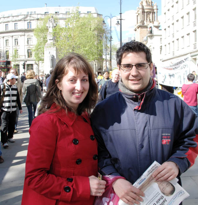意大利裔的劳瑞塔是伦敦的一位金融分析师,当天和女友艾玛经过圣马丁广场,看到法轮功学员打出的真相横幅以及法轮功学员的功法展示后停下了脚步,并接过法轮功真相报纸认真阅读起来。劳瑞塔对法轮功被迫害这样的事情还在发生表示很难过。记者向他介绍“四•二五”和平上访的历史事实后,劳瑞塔表示:“我没去过中国,但这样的事实说明中国没有人权,根本没有言论自由。”“今天这样的活动很有用,比如说我们,原来一点不知道,现在知道了,我将进一步了解信息,也许再过几天我就会了解了。”“伦敦有很多外国人,在这里的确能让更多人知道,而且我希望能让英国政府表态。”