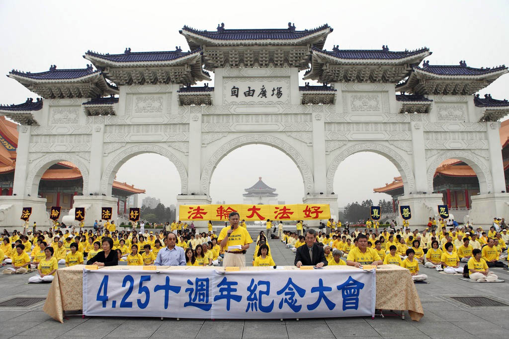 事隔十年,二零零九年四月二十五日下午,来自台北市及其邻近县市的千名法轮功学员在台北市“自由广场”前,以记者会和大炼功来纪念“四二五”十周年这个日子。现场吸引了包括美联社、法新社、中央通讯社、自由时报、日本NHK电视台以及日本时事通讯社等多家媒体采访。