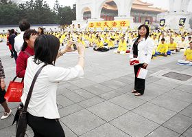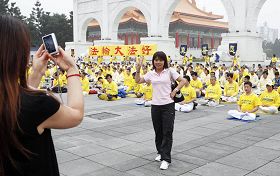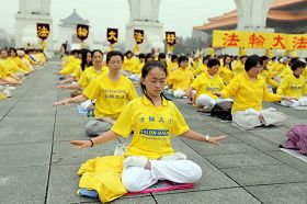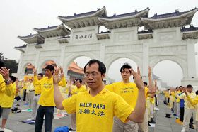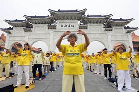 千名台湾法轮功学员在自由广场炼功,纪念四•二五十周年