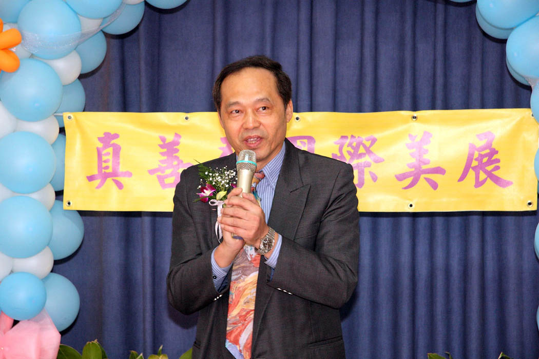 主持人卢先生说:“这是我第一次尝试当主持人,虽然很紧张,但能参与这个活动感到真的很有意义。因为我本身在今年二月到台北看神韵艺术团表演,里面有一个节目是说有个年轻人看了真善忍美展之后(《美展奇缘》),身心起了很大的变化。其实我真的觉得,美展真的能对社会起到一个启发人性的作用,意义非凡。”