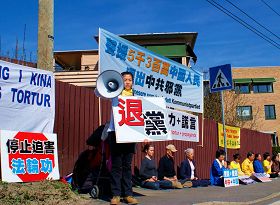 学员们打出了“世界需要真善忍”、“停止迫害法轮功”、“声援五千三百万中国人民退出中共邪党”等横幅,并以广播的方式揭露了中共的邪教本质,唤醒世人,共同制止迫害。