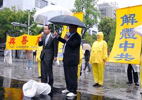 ![]() 法轮功学员冒雨在横滨游行,纪念四•二五和平上访,谴责中共迫害 |